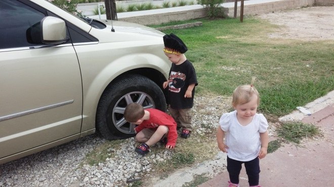 My brother in law just sent me a sweet text about the new blog. He reminded me about a great memory with golden girl. My brother in law, Cody, and my sister, Tammy, live in a very nice neighborhood. Their neighbor has lion statues in the front yard, just saying. They have a neighborhood Facebook page that basically blasts anyone for doing anything wrong. It’s mostly wealthy retired people there. So one day I decide to go hang out with them. They live about an hour away from me in Kingwood, TX. I am a few miles away from their neighborhood when I start to hear a dragging sound from under my car. SON OF A !!!!! I think. I pull over and a big black plastic thing is hanging down, dragging on the street. I tried for a while to do anything to stop it from falling down but couldn’t. So there I am driving through their neighborhood. I pull up to their house and they are outside. All anyone can hear is chhhhhh. I can’t help but laugh as I pull up. Cody looks at me and just shakes his head in disapproval and Tammy just laughs. Cody zip ties it to my car and all is well. It stayed fixed until I was driving in Fredericksburg, TX one weekend with my mom and kids. It got ripped off and we kept on going. My mom just put her hand over her face in embarrassment. Good times.